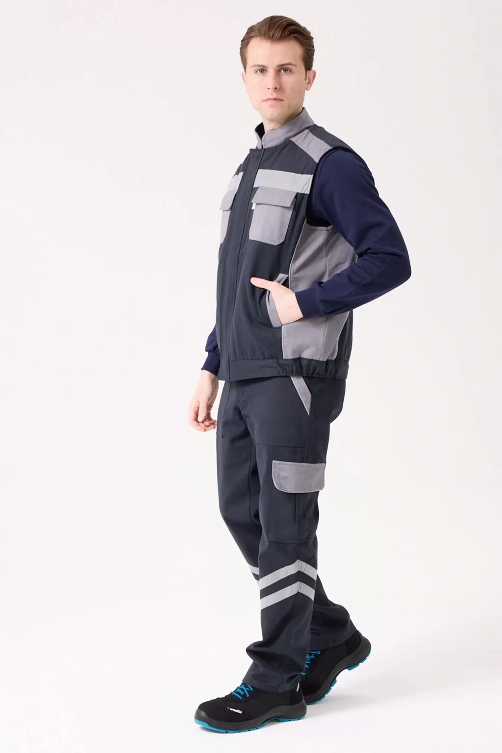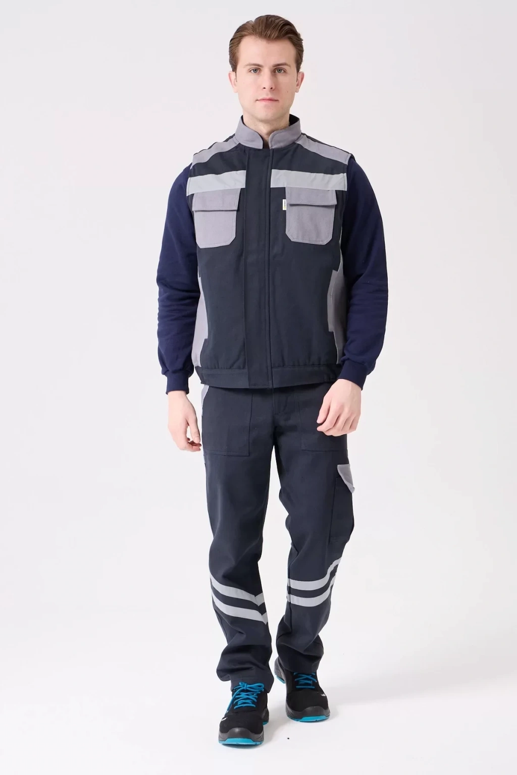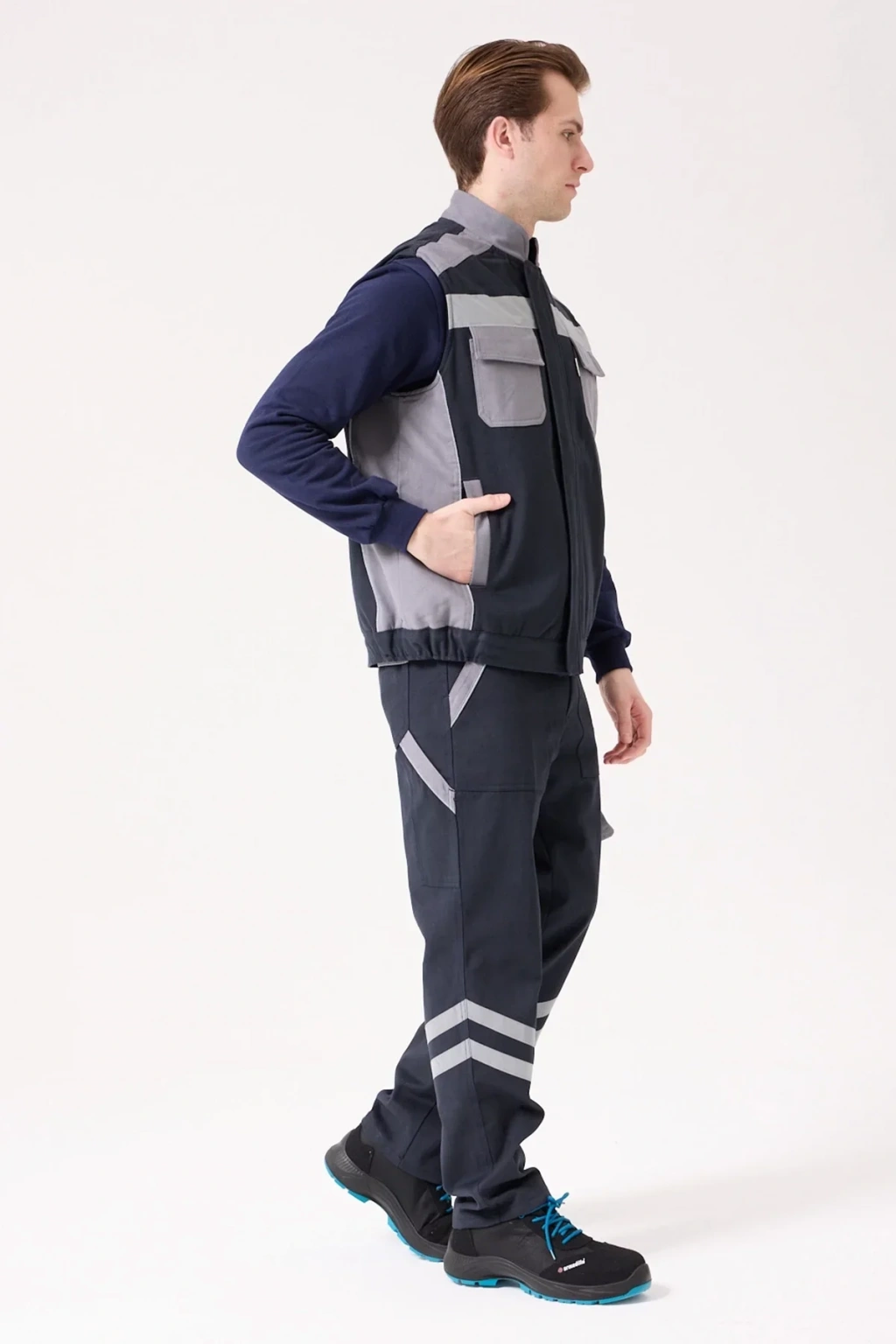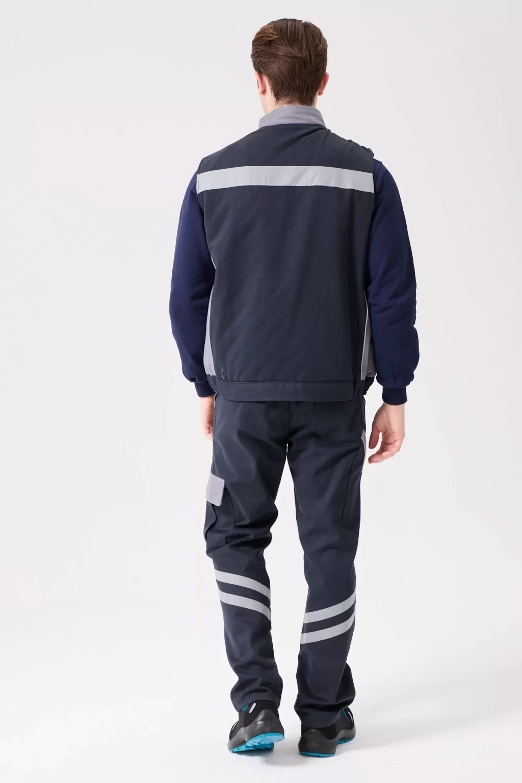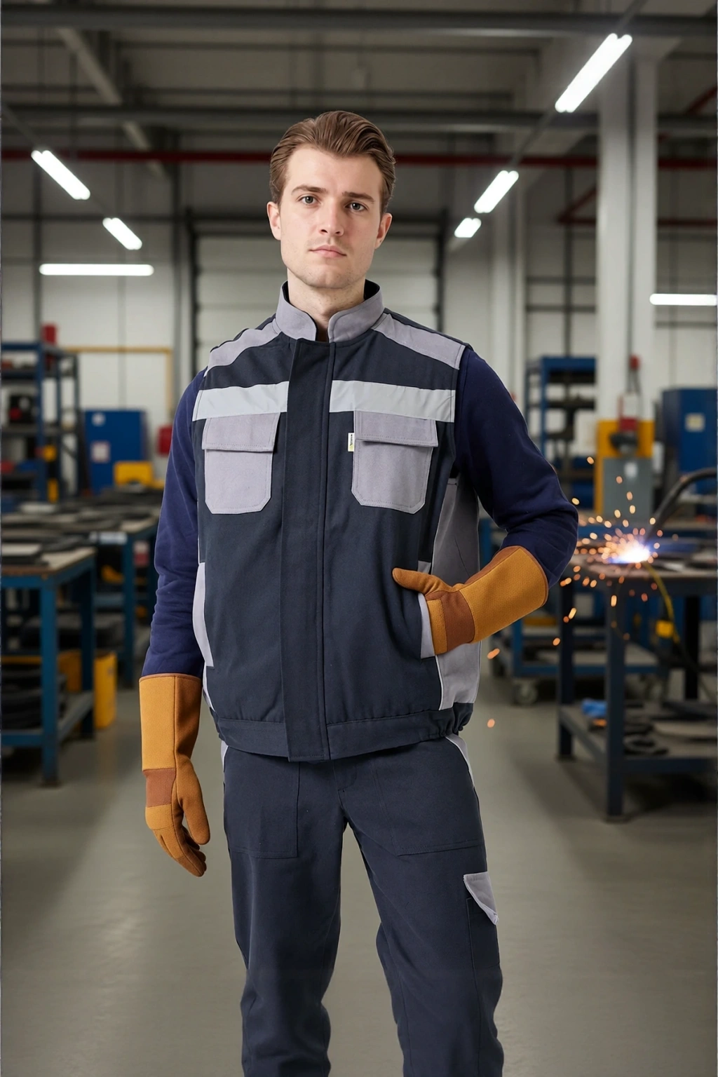 Soğuk kış günlerinde iş güvenliğinizi ve konforunuzu en üst düzeye çıkaran, gri ve lacivert renk kombinasyonuyla şıklığıyla dikkat çeken kışlık gabardin iş yeleği.