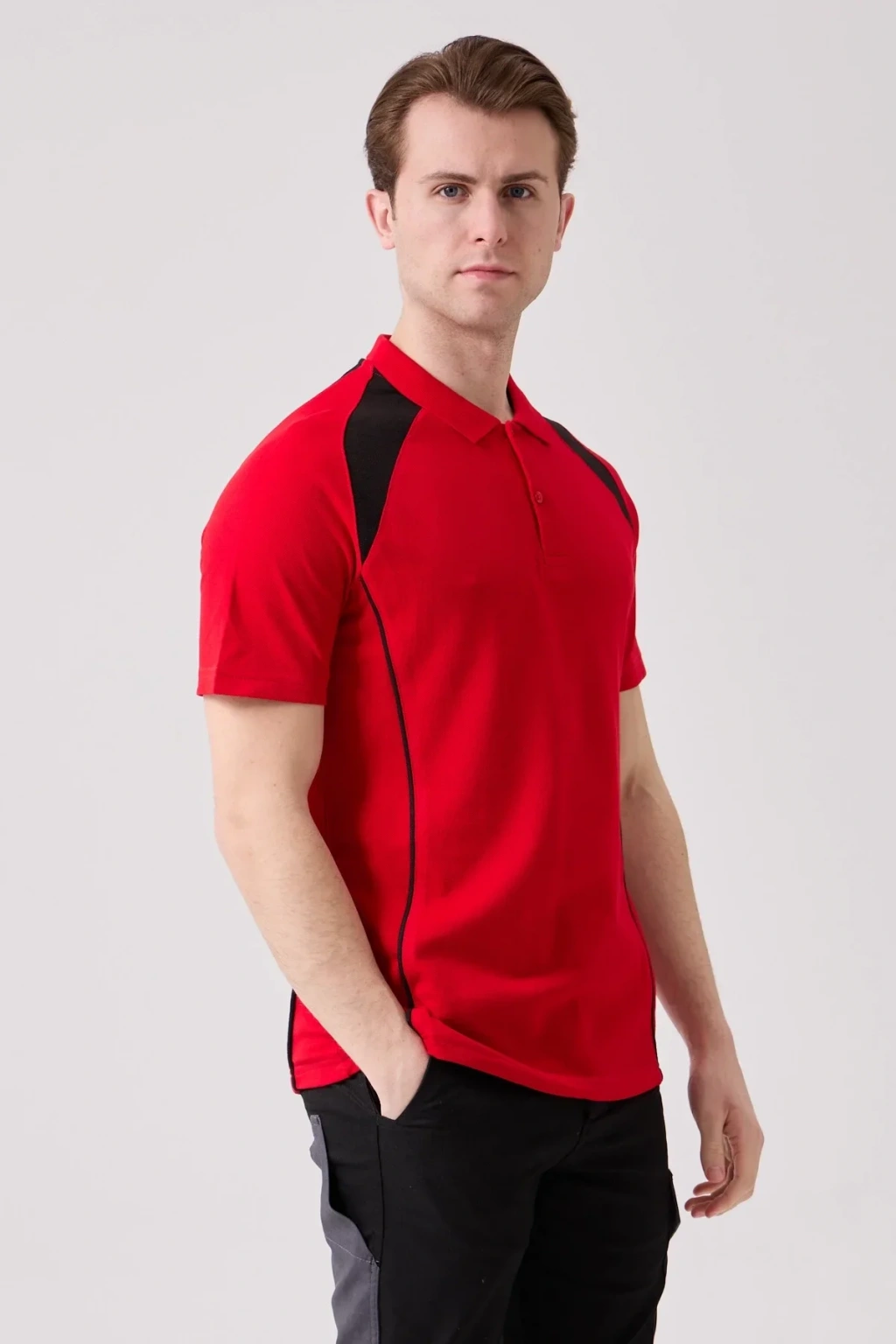 Polo Yaka Tişört GriKırmızı Detaylar İş Güvenliği Vancelya shirt Nefes Alabilir Şık Rahat Günlük