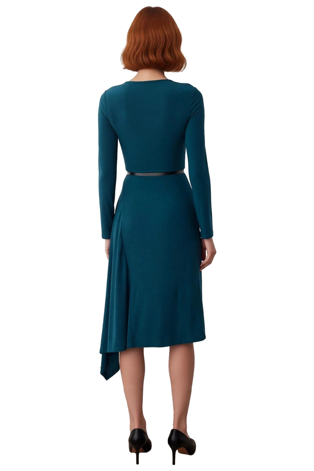Ürün Özellikleri: A-line kalıp, %96 polyester %4 elastan materyal, düz desen, havuz yaka, standart kol, örme kumaş, siyah renk, kemerli tasarım.