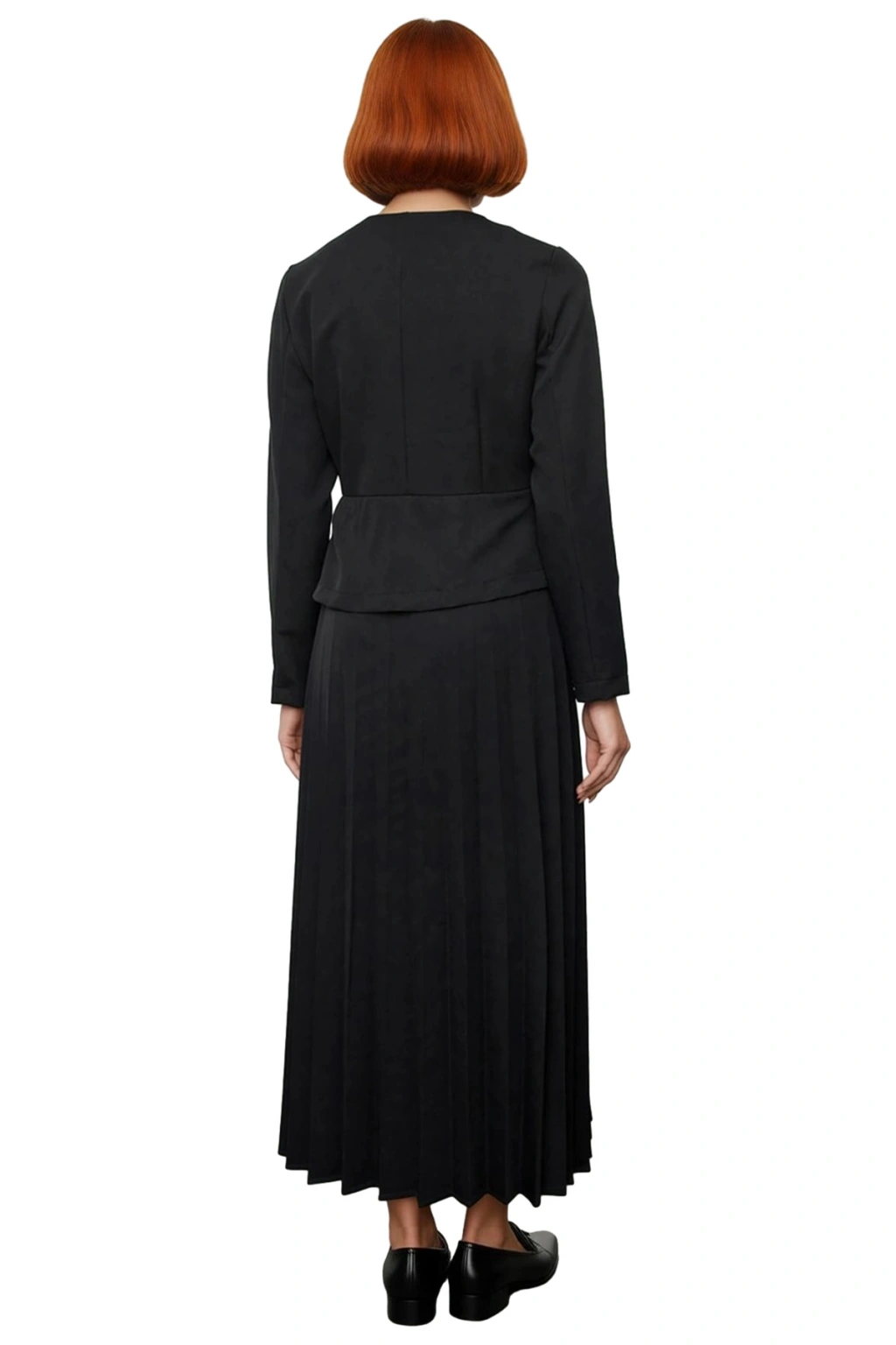 Kadınlar için tasarlanan bu zarif Siyah Düz Desenli Uzun Kollu Maxi Elbise, modern ve klasik çizgileri bir araya getirerek iş ve özel davetlerinizde göz kamaştırıcı bir şıklık sunar. Skater kalıbı, üst bedeni nazikçe sararken, beli vurgulayıp alt kısımda piliseli maxi eteğiyle akıcı ve hacimli bir görünüm yaratır. Polyester ve elastan karışımından oluşan dokuma materyali, gün boyu süren hareket özgürlüğü ve konfor sağlarken, aynı zamanda kırışmaya karşı dirençli yapısıyla her zaman bakımlı görünmenizi destekler. Zamansız siyah rengi ve sade düz deseni, minimalizmin zarafetini yansıtırken, kolay kombinlenebilir yapısıyla gardırobunuzun vazgeçilmezleri arasına girmeye hazırdır.